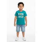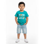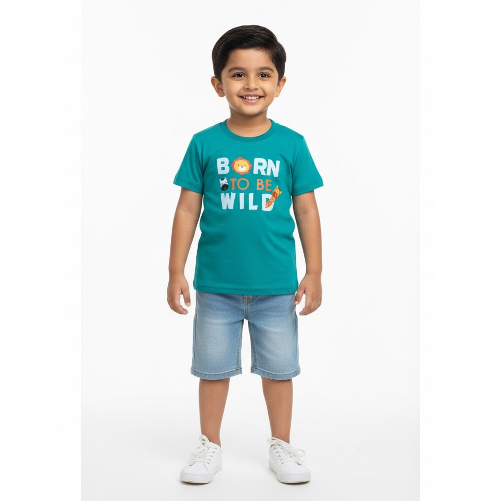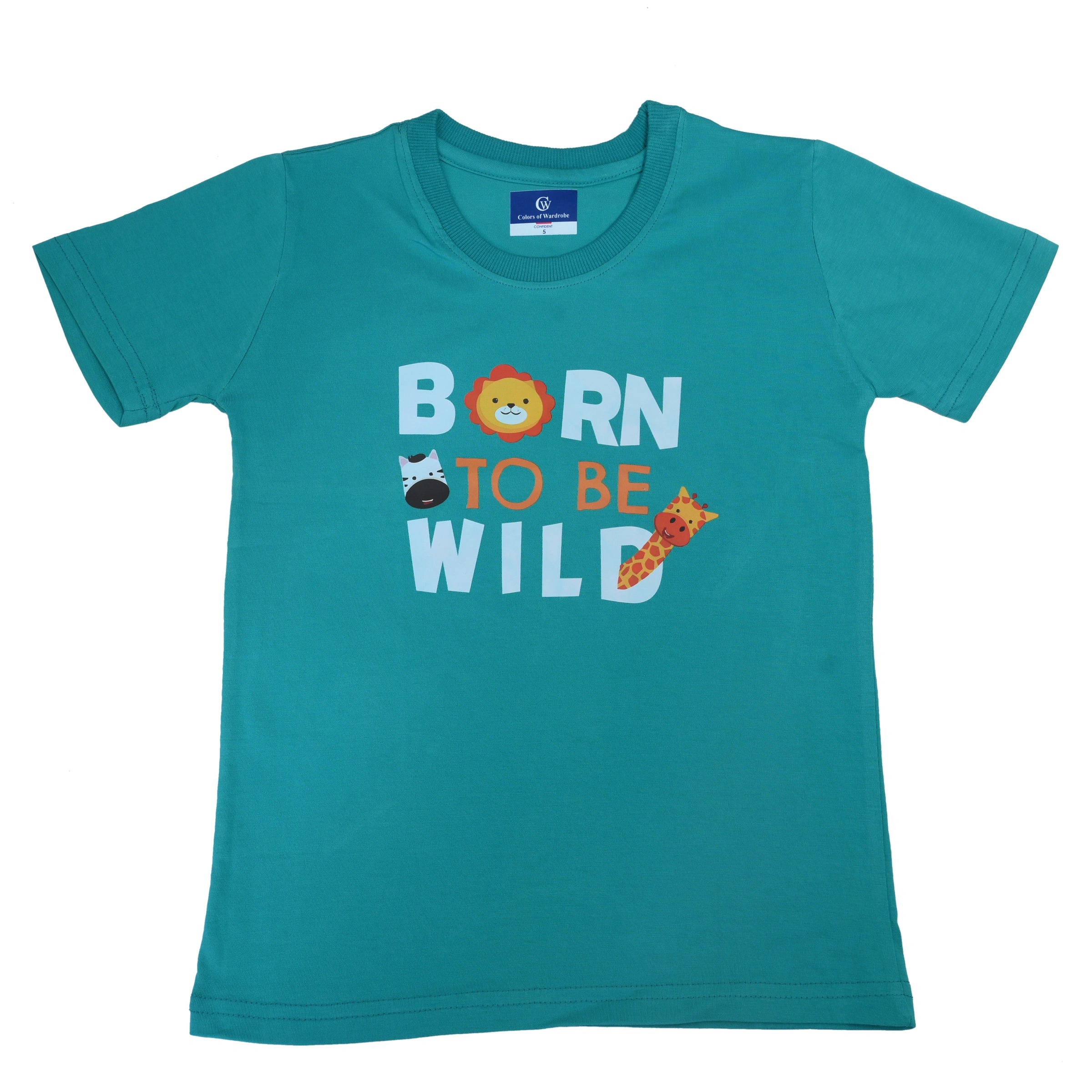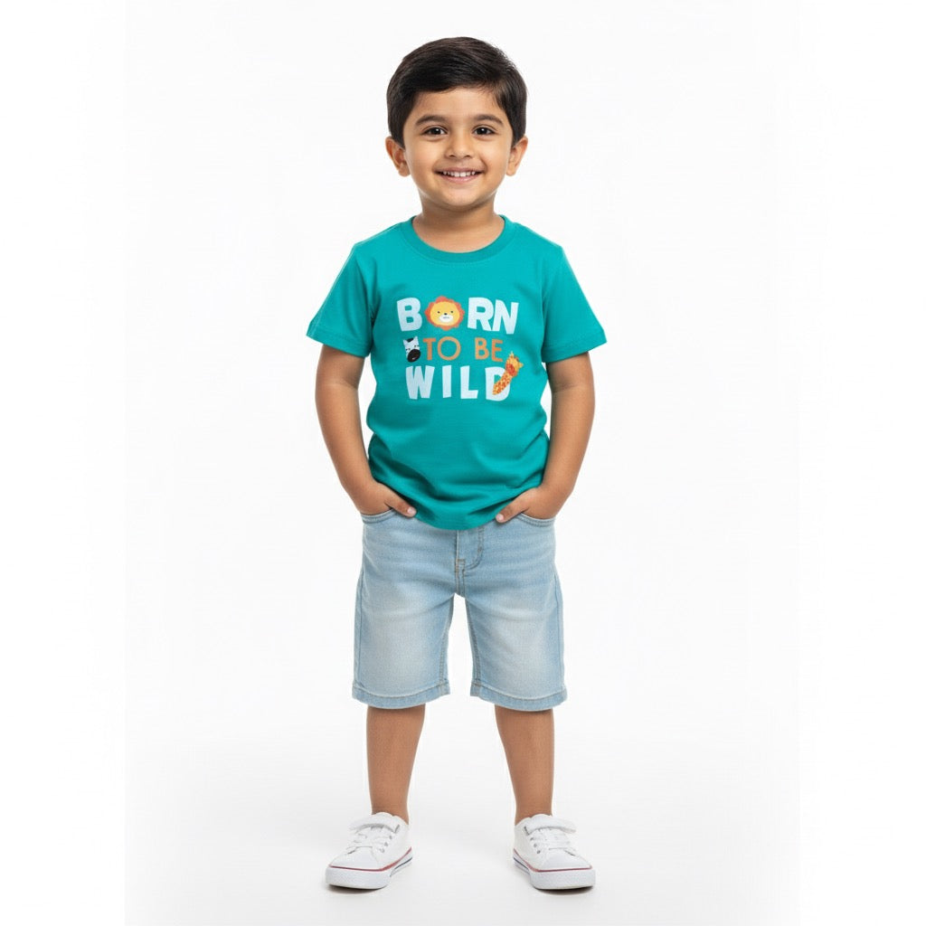 This teal short-sleeve kids’ t-shirt features adorable animal prints with the bold phrase "Born to Be Wild." Made from soft, breathable cotton, it keeps your child cool and comfortable all day long. Fun and lively, this tee is perfect for playtime, outings, or casual wear, adding cheerful energy to their wardrobe.